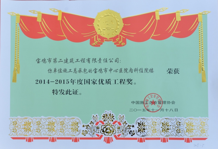 國(guó)家優(yōu)質(zhì)工程獎(jiǎng)(寶雞市中心醫(yī)院?內(nèi)科住院樓)