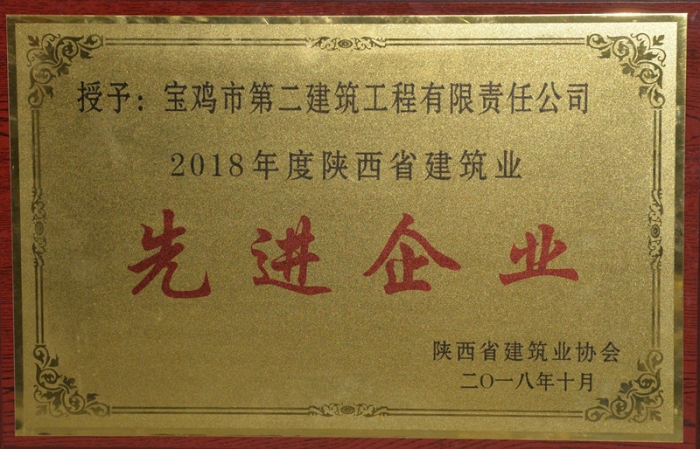 | 公司獲評“2018年度陜西省建筑業(yè)先進企業(yè)”稱號 |
