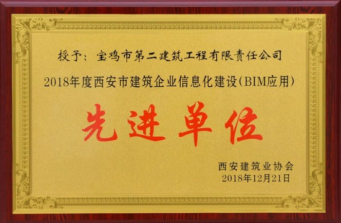 近日,西安市第二屆“唐都杯”BIM應用大賽頒獎典禮、陜西省“秦漢杯”第三屆BIM應用大賽表彰大會順利舉行。由公司推送的《絲綢之路經濟帶·西安港國際采購中心項目BIM應用》、《寶雞文化藝術中心工程地下室局部管線綜合排布》兩項參賽作品榮獲陜西省“秦漢杯”BIM應用大賽綜合組二等獎和施工單項組三等獎,榮獲西安市“唐都杯”BIM應用大賽綜合應用優(yōu)勝項目二等獎和三等獎。公司獲評“2018年西安市建筑企業(yè)信息化建設(BIM應用)先進單位”稱號,馬翔同志被授予“2018年度西安市推進建筑企業(yè)信息化建設(BIM應用)先進個人”稱號。