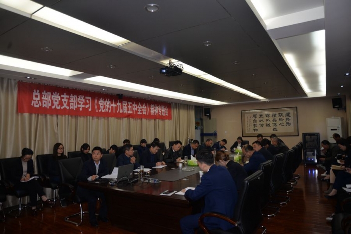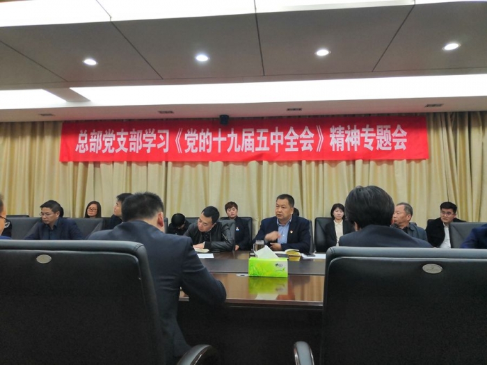 2020年11月10日晚,公司總部黨支部組織召開(kāi)學(xué)習(xí)貫徹《黨的十九屆五中全會(huì)》精神專題會(huì)。公司董事長(zhǎng)、黨委書(shū)記胥立、班子成員及各部門相關(guān)黨員干部共計(jì)30余人參會(huì),會(huì)議由總部黨支部書(shū)記沈?yàn)槊裰鞒帧?/span>