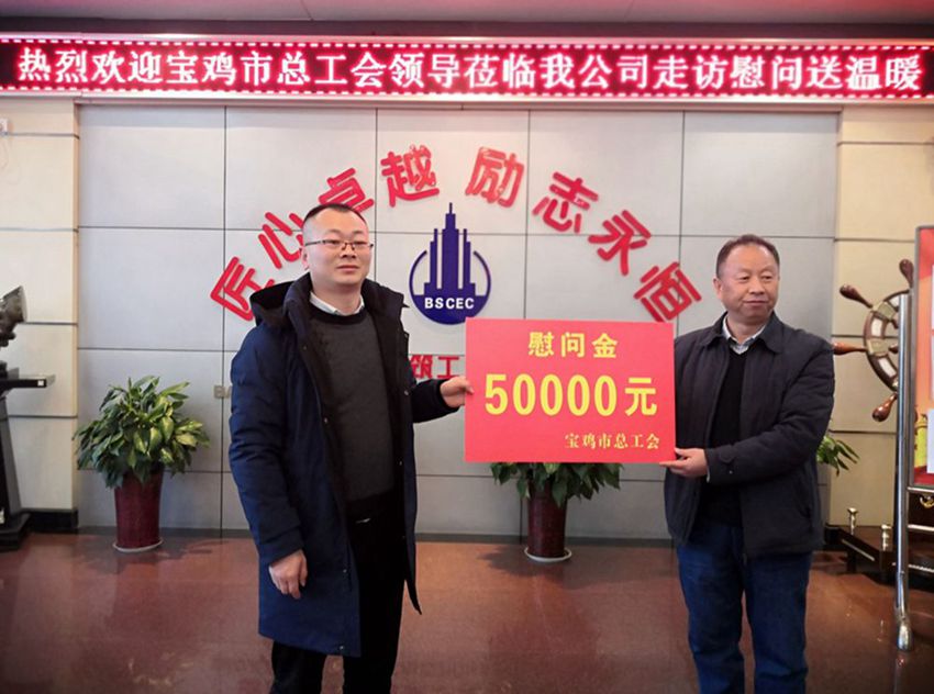 2021年1月12日下午,由寶雞市總工會黨組副書記、常務(wù)副主席趙會祥帶隊的市總工會慰問組來到我公司開展2021年“雙節(jié)”送溫暖活動,為公司送來5萬元慰問金。