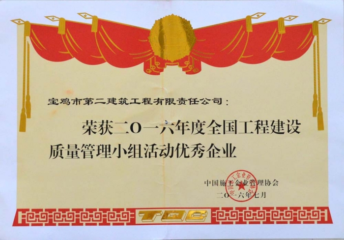 2016年度全國工程建設質量管理小組活動優(yōu)秀企業(yè)